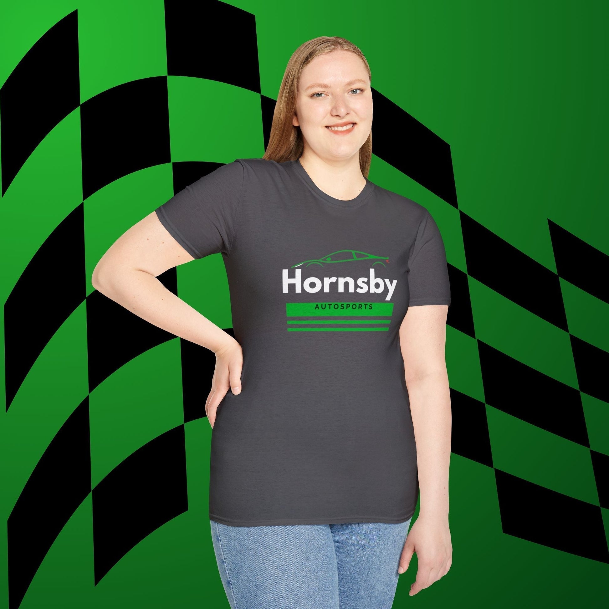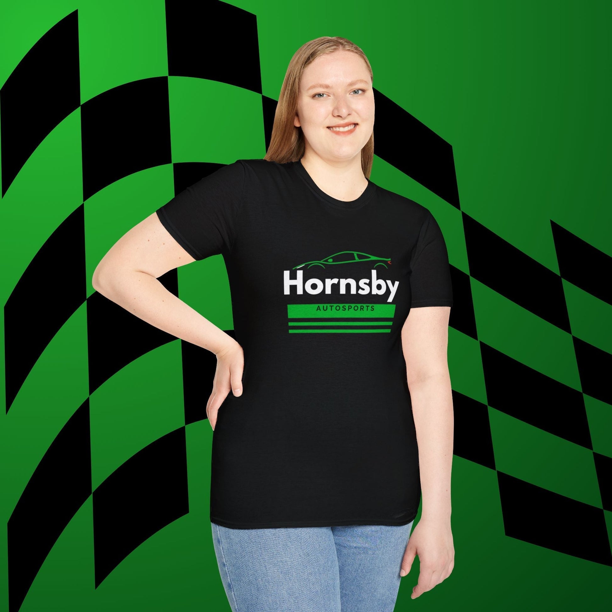 Elevate your wardrobe with the Hornsby Autosports Green Logo Unisex Soft-Style T-Shirt – where superior comfort meets timeless style, and ethical production meets quality assurance.